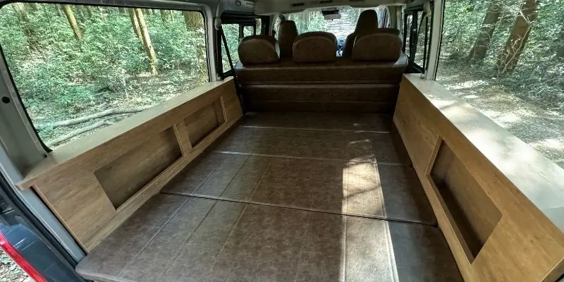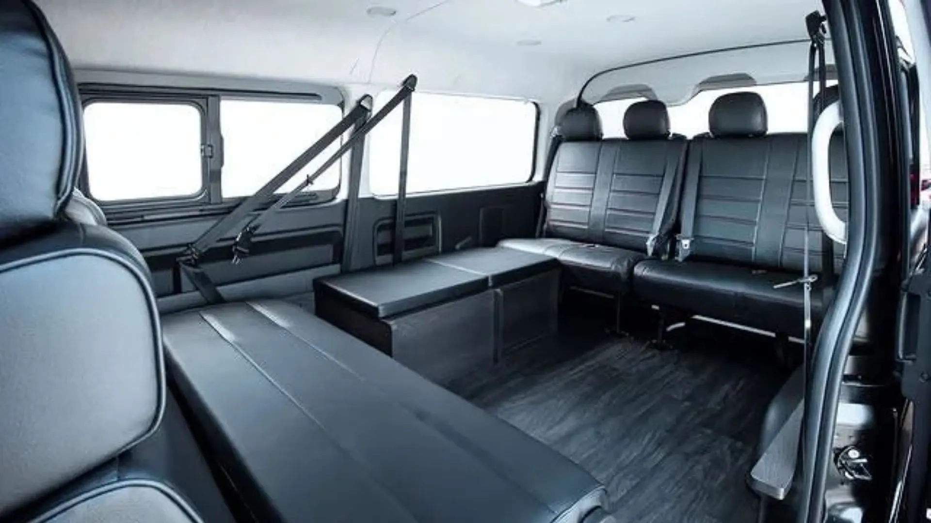 ワゴンGLベース。3列目シートを外してフルフラットベッドを展開可能。 前向き乗車8-9名+横向き乗車で、3ナンバー10人乗り公認を取得。